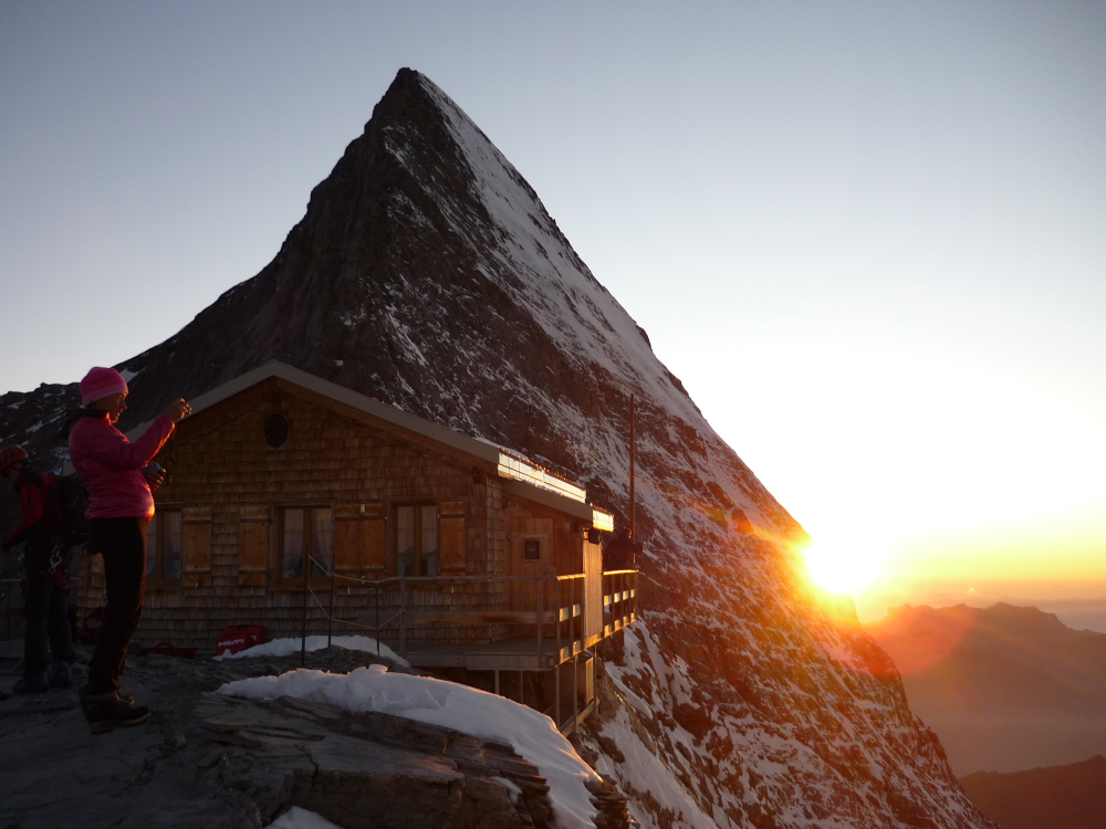 Traverser du glacier pour rejoindre le socle rocheux menant à la cabane